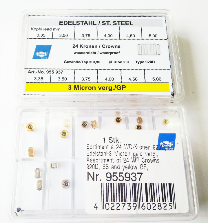 Набор состоит из 24 головок желтого и белого цвета, размеры: 0.9, диаметр от 3.35 до 5.00мм, втулка 2,0, с прокладкой