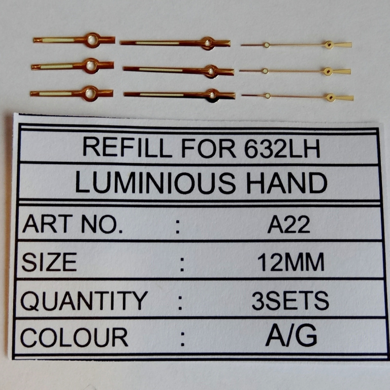 Набор стрелок, желтые со светомассой, час(120)+мин(70)+сек(200), 3 комплекта в наборе