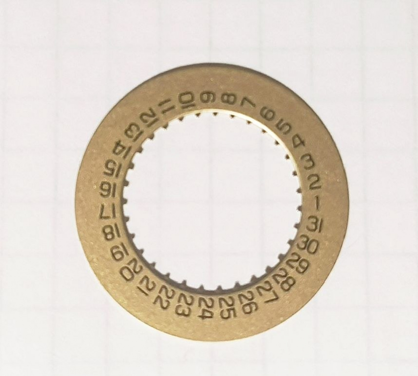 Date indicator 4H, inside gilded/black suspended in the axis