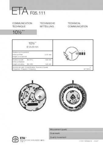 Механизм в сборе ETA F05.111=F05.115=955.414 AIG1 календарь на 6 часов/3 стрелки