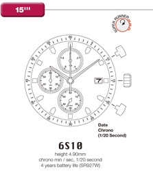 Function Chrono min/sec, 1/20 second Date Long Life Battery