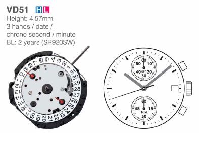 Функции: 3 hands / date ; Chrono second / minute
