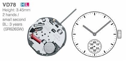 Калибр: 10 1/2''' Высота: 3.45mm Переводной вал: 351-177 Элемент питания: SR626SW (377) Стрелки: 110/65