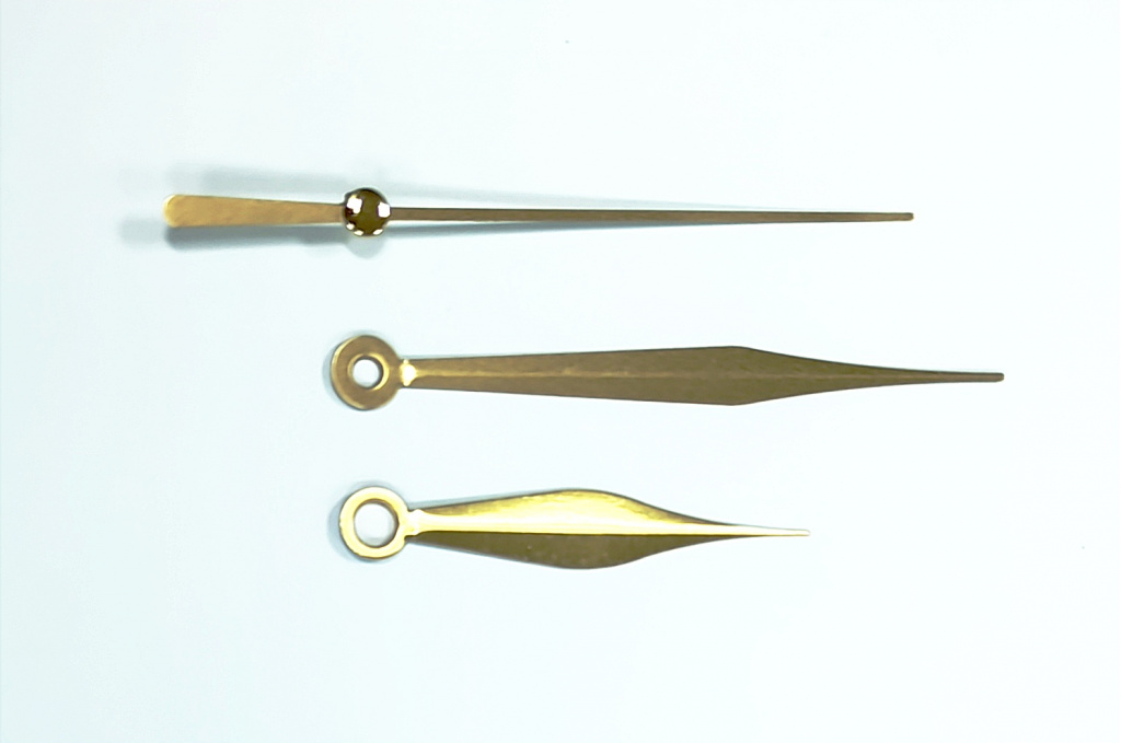 Комплект стрелок для настен. мех. 200A734G Длина - 63*89*98ММ-Ч*М*С ММ. Золотые, металл