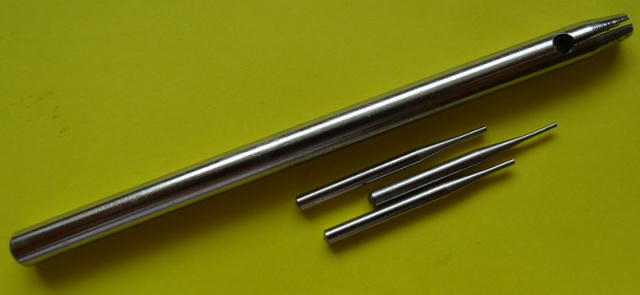 В компелете с выбивателем идет три сменных насадки - 0.6, 0.8, 1.0 мм