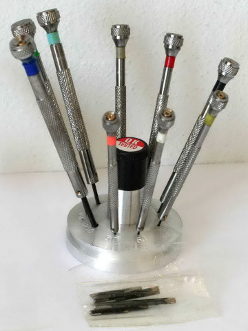 Набор из девяти отверток на подставке.